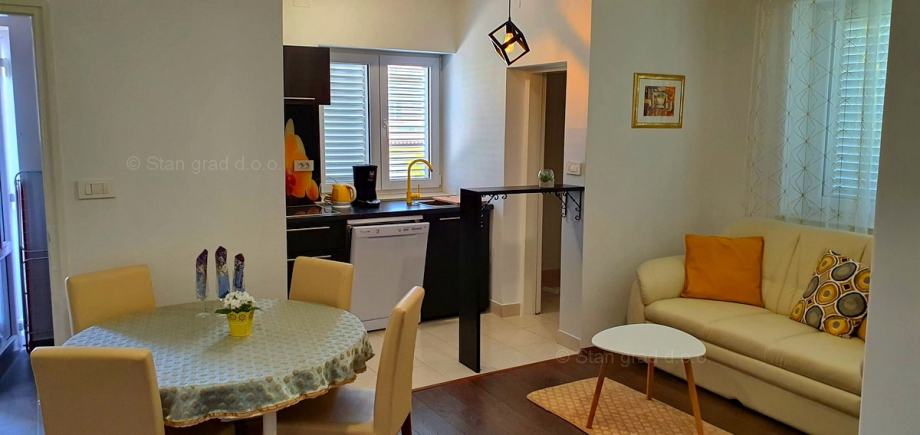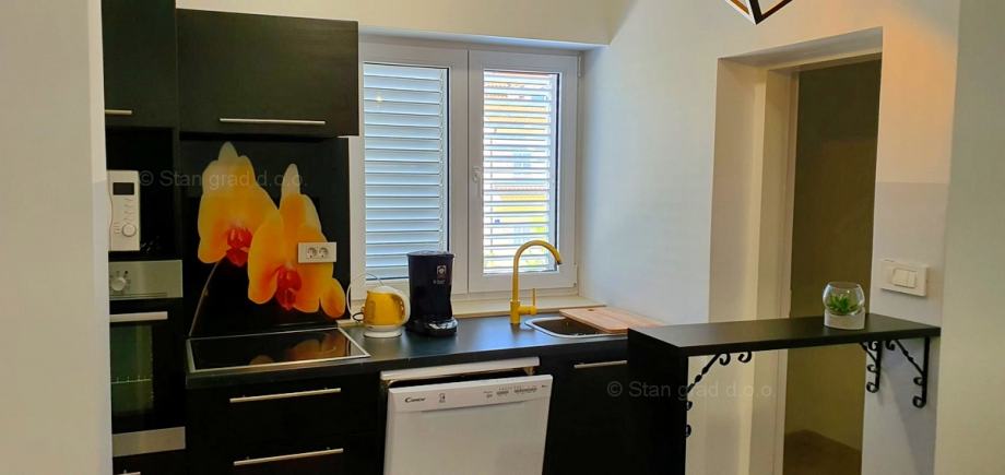 Ova prekrasna kuća, smještena u srcu grada Krka na prekrasnom otoku Krku, pruža jedinstvenu priliku za život uz obalu Jadranskog mora. Uz vrhunsku gradnju, ova nekretnina će Vas oduševit udobnošću, šarmom i pomno biranim detaljima. 2018. godine napravljena je nadogradnja i potpuno preuređenje kuće. Korišteni su vrhunski materijali, a pri renovaciji vlasnici su poštovali tradiciju primorske gradnje vodeći računa o kvaliteti u svakom detalju: rukohvati su rađeni od kovanog željeza i bračkog kamena, unutarnje stepenice od prvoklasnog stodvadesetgodišnjeg podravskog hrasta dok je benkovački kamen korišten za zidnu ogradu, ulazni pristup i parking. Sigurnost doma osigurana je protupotresnim blokovima i armiranim betonom. Posebni ugođaj posvećen je vrtnom dijelu okućnice koji je obnovljen prvoklasnom zemljom podobnom za sadnju raslinja, stabla i cvijeća po vlastitom ugođaju. Ova dvojna kuća sastoji se od dva stana, zasebnih ulaza kao idealna opcija za više obitelji ili investiciju, a opet, uz mogućnost povezivanja ova dva stana u jedan komforni, obiteljski stan. Jedan od stanova ima i prostranu galeriju koja daje dodatni šarm i ugođaj u prostoru. Stanovi su građeni i opremljeni najkvalitetnijim materijalima i opremom: stolarija je od kvalitetnih profila njemačkog proizvođača SALAMANDER, alu rolete dok stakla i austrijska tenda imaju UV zaštitu. Unutarnja stolarija je od punog drveta, ugrađena je Mitsubishi klima, a stanovi su opremljeni modernom kuhinjom te novim, vrlo malo korištenim namještajem i TV uređajem. Iznad stanova je tavan u cijelosti uređen kvalitetnim brodskim podom, Velux krovnim prozorom te je pripremljen za boravak / stanovanje. U vlasništvu ove kuće je i uređena okućnica od 327 m2. Na pripadajućoj je okućnici ispod nadstrešnice osiguran prostor za parkiranje 4 i više vozila, a kuća ima i garažu za parkiranje vozila te spremište.