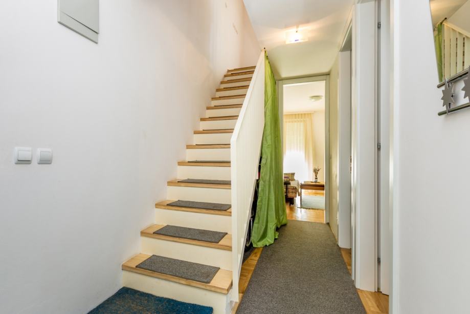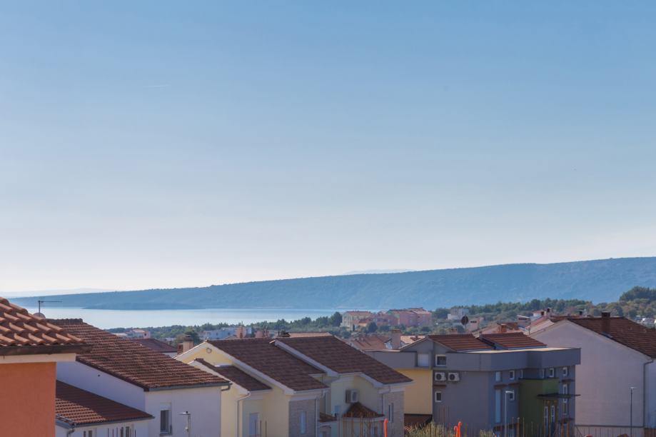 Na mirnoj lokaciji u gradu Krku smješten je ovaj prostrani trosobni apartman koji se proteže kroz dvije etaže, spajajući udobnost, funkcionalnost i mediteranski ugođaj. Prva etaža obuhvaća tri spavaće sobe i moderno uređenu kupaonicu, dok se na gornjoj etaži nalazi dnevni boravak otvorenog koncepta povezan s kuhinjom i blagovaonicom, iz kojeg se izlazi na natkrivenu lođu površine 11 m². S lođe se pruža djelomičan pogled na more, idealan za opuštanje i uživanje u toplim danima.