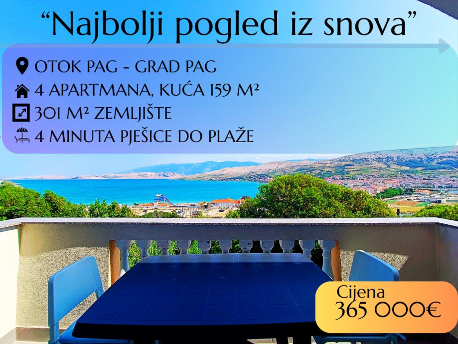 Prodaje se apartmanska kuća na otoku Pagu, samo 250 metara ili 4 minuta pješiće do plaže Prosika sa pješčanim dnom i postupnim ulazom u more.