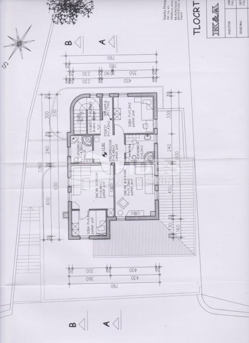 Kuća je građena na plivajućoj ploči 70 cm debljine od vodonepropusnog betona cca 150 kvadrata je ukopano armirano i izolirano.na betonskim zidovima debljine 20 cm prvo je stavljena ljepenka čepasta folija stirodur pet cm zračne brane i onda je sve obzidano sa 7 cm betonskim blokovima .Cijelom dubinom ukopa napravljena je drenaža po pravilima struke sa drenažnim cijevima i sa dva upojna bunara radi ventiliranja