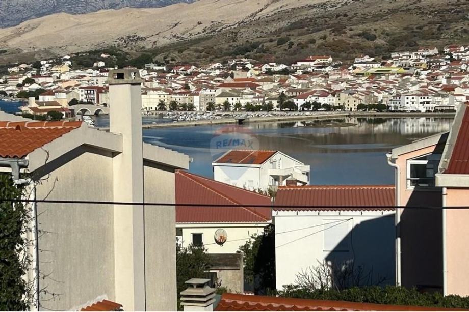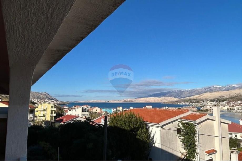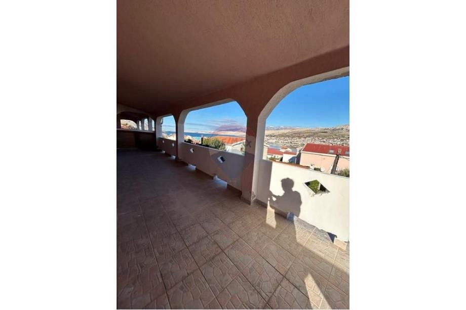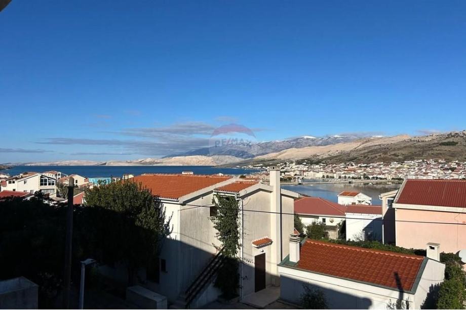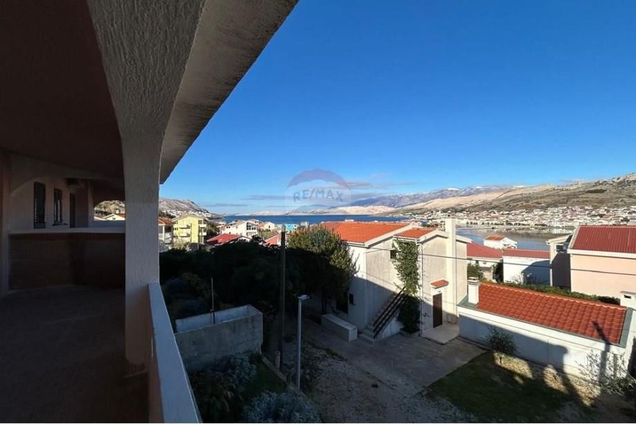 Sa terase se proteže predivan pogled na more, velebit i grad Pag.