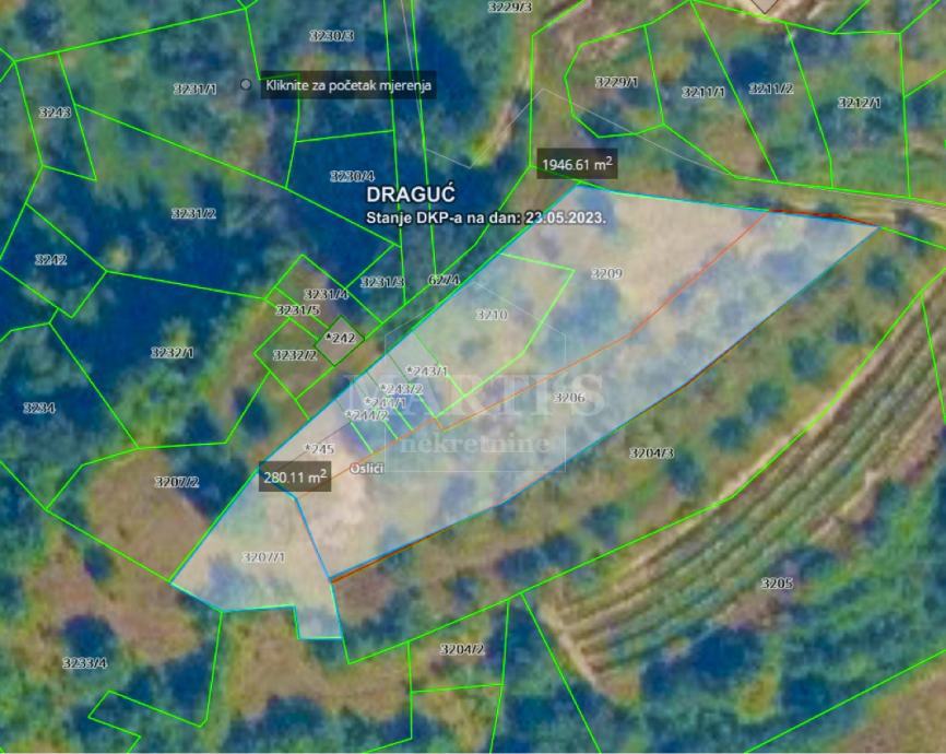 JEDINSTVENO GRAĐEVINSKO ZEMLJIŠTE, SREDIŠNJA ISTRA, KOD DRAGUĆA, 2257 m2, NA BRIJEGU
