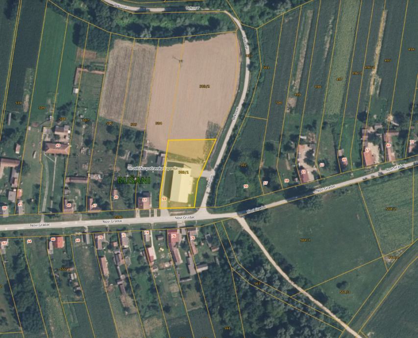 Nekretnina koja se sastoji od čkbr. 503/1 Novi Gradac (gospodarska zgrada k.b. 53 na 623 m2, gospodarsko dvorište sa 2207 m2) ukupno 2830 m2 i čkbr.503/2 oranica Novi Gradac, u naravi zemljište sa 6192 m2, sve upisano u zk.ul.br.354 k.o. Rušani