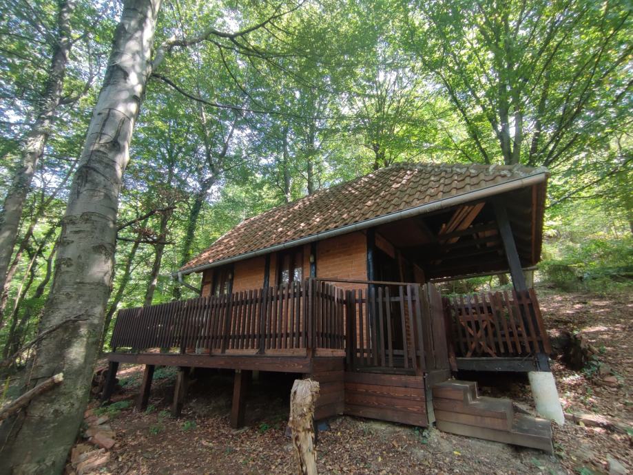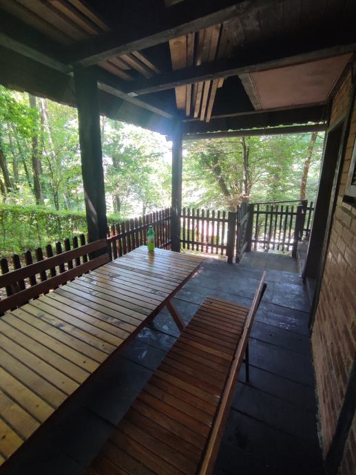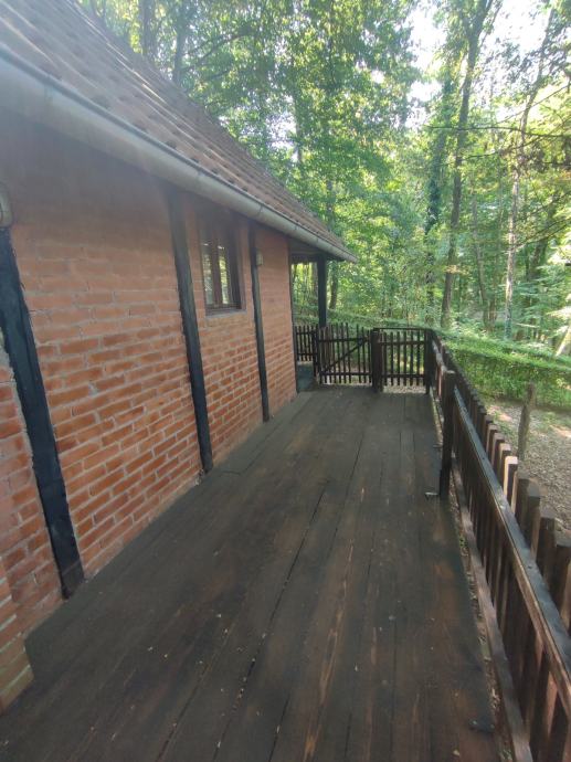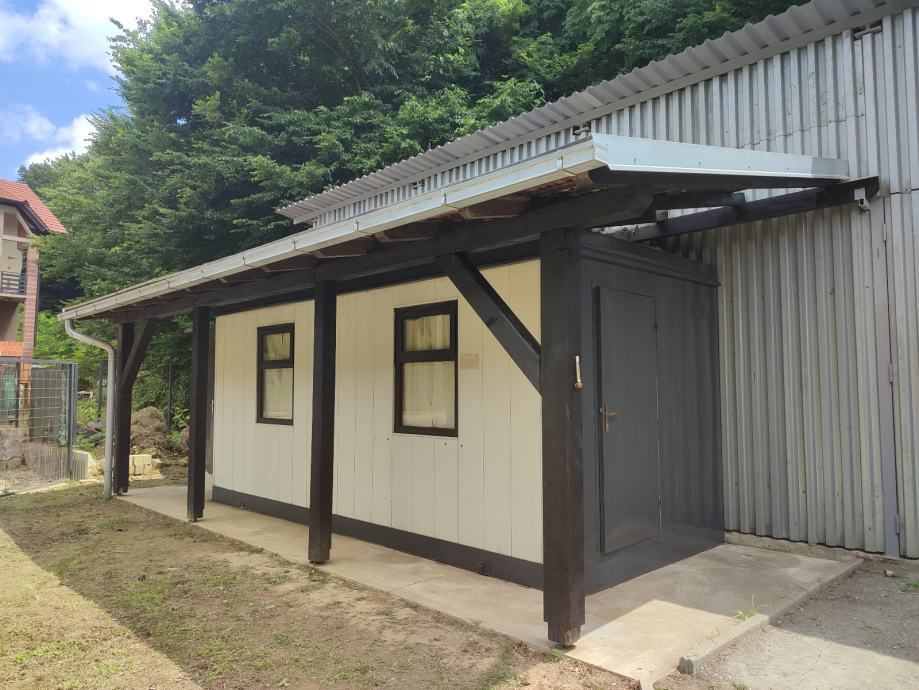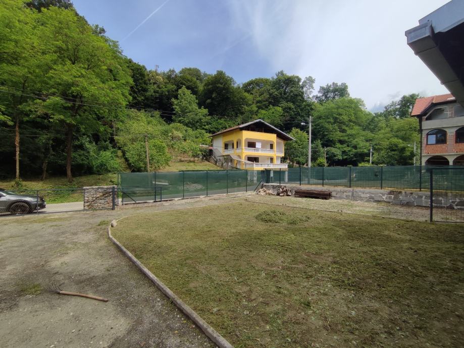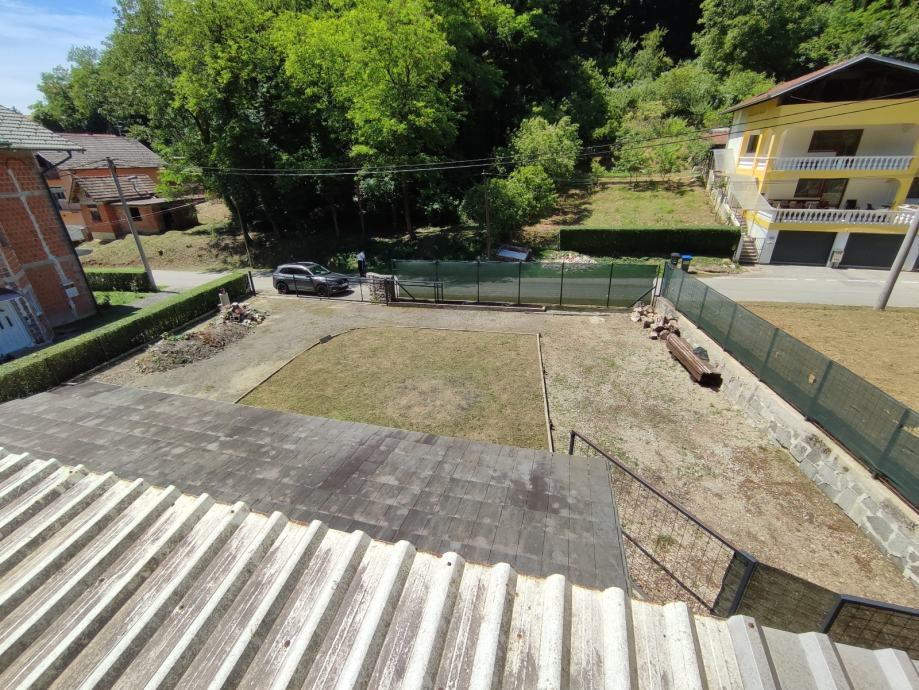 Na parceli se nalazi građevinska hala sa uredom, sanitarnim čvorom i kuhinjicom. Hala, ured i kućica imaju vodu i struju. Na parcelu se ulazi kroz velika klizna vrata dužine 5,5m, bez problema mogu ulaziti veća vozila. Hala je veličine 15x9m.Sa prednje strane je željezna konstrukcija sa limenim pokrovom, a ostala tri zida su armirano betonska sa ispunom od betonskih blokova, krov je željezna konstrukcija+ lim.Temeljna ploča je isto AB.Ulazna vrata od hale su veličine 3x3m tako da se u nju može ući kombijem ili manjim kamionom. Iza hale na povišenom djelu se nalazi prekrasna kućica za odmor od 20m2 , do nje kroz šumicu vode stepenice.