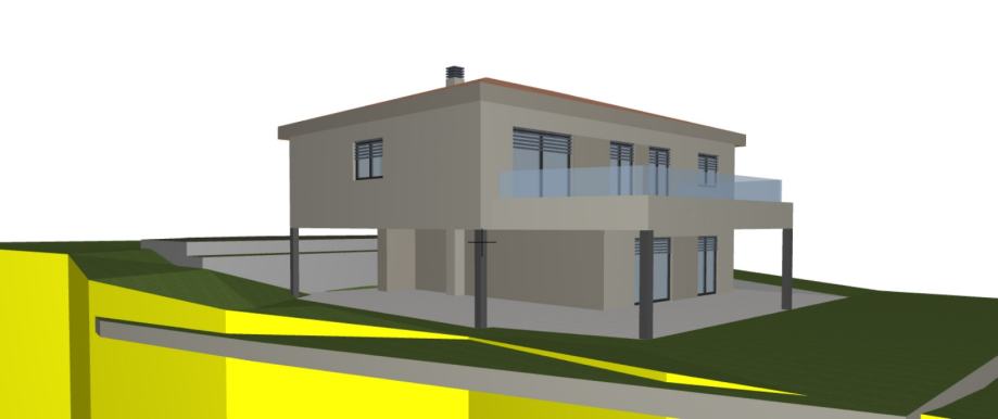 Građevinska parcela sa projektom i pravomocnom građ dozvolom za MONTAZNU OBITELJKU KUCU.Može se početi sa gradnjom odmah!Vlasnistvo i papiri cisti!Voda na parceli ,struja na samom rubu,tel isto tako ,kanalizacijski prikljucak ispred parcele na cesti.Moguca preinaka projekta i gradnja do 5 stambenih jedinica.Nema agencijske provizije te isto tako molim da me agencije zaobiđu.Snižena cijena