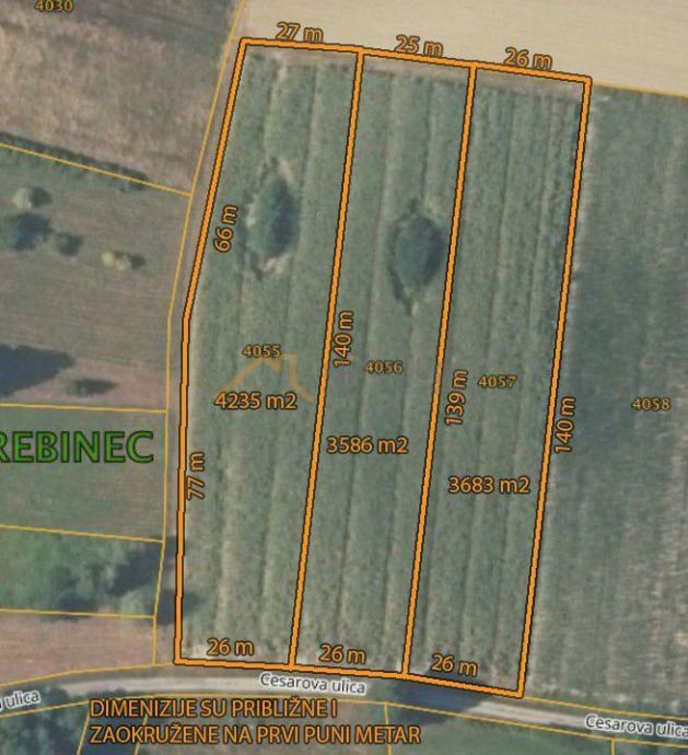 Prodaju se zemljišta, dio zemljišta se nalazi u građevinskoj zoni cca 4700 m2, ostatka zemljišta se nalazi u van građevinskoj zoni. Sveukupna površina zemljišta iznosi 11 504 m2.