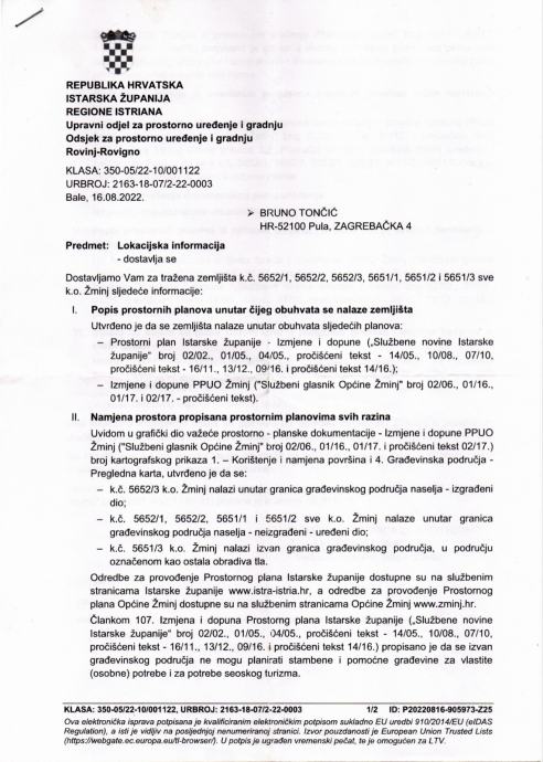 Lokacijska informacija (dokaz da možete graditi), vlasništvo 1/1 bez tereta.