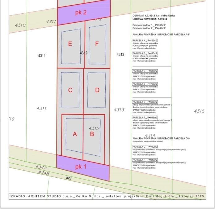Moguća je pojedinačna kupnja parcela C, D, E i F, ili tri u nizu A, C, E i B, D, F.