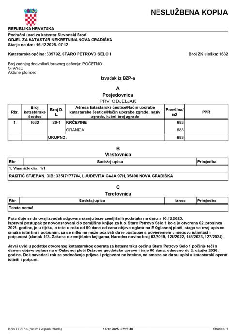 Prodajem 2 gradilišta u Starom Petrovom Selu. K.o. Staro Petrovo Selo 1, k.č.br. 1631 površine 697 m2 i 1632 površine 683 m2. Cijena svakog gradilišta je 9000€. U blizini se nalaze vodovod i kanalizacija. Vlasnik 1/1, bez tereta. Zvati na 098/340-294 ili 098/196-0440.
