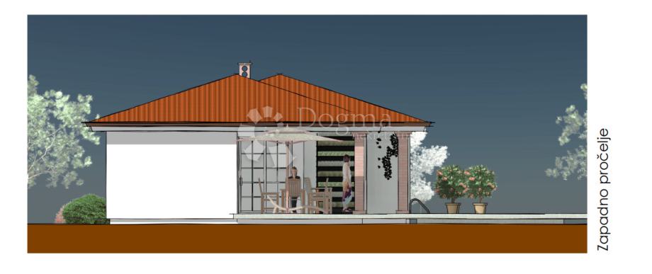Za teren je pripremljen idejni projekt za reprezentativnu obiteljsku kuću koja se sastoji od trosobnog stana s velikim dnevnim dijelom i terasom. Kuća ima dvije kupaonice, bazen i dva parkirna mjesta. Prilazna cesta se nalazi s južne strane terena, a prilaz je moguć s dvije ceste. S ovim idejnim rješenjem moguća je i gradnja montažne, niskoenergetske kuće.