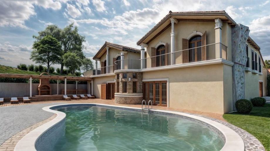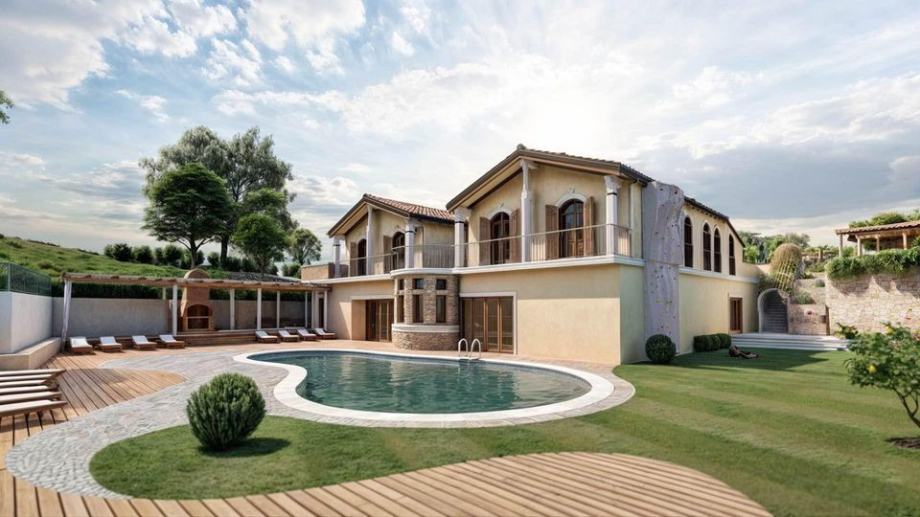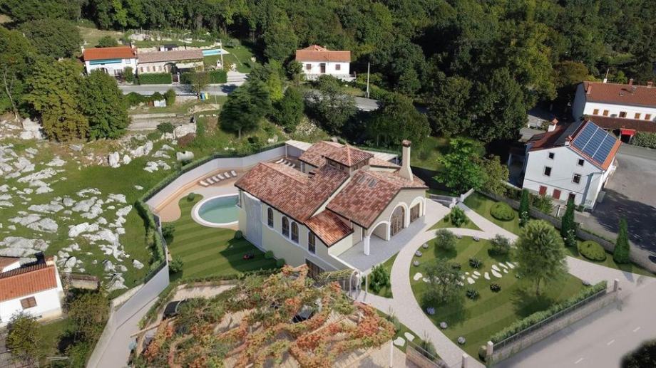 Prodaje se građevinski teren (mješovite i stambene namjene) sa započetom gradnjom vile s bazenom u prirodnom ambijentu Istre, u blizini Boljunskog polja, svega tri kilometara od Tunela Učka. Izgrađen je prvi kat ville od 440m2, a predviđena je gradnja drugog kata jednake površine.