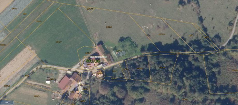 Održavano građevinsko + poljoprivredno zemljište u Brlogu. Ucrtan objekt građen prije 1968. g. Ishođeno je uvjerenje o evidentiranju građevine i Lokacijska informacija za građevinsku parcelu. Komunalna infrastruktura – struja i voda, nalaze se na cesti, priključaka parcela nema. Katastarske čestice koje čine cjelinu: 539/2 - voćnjak (281m² / 2.000 €) 539/50 - pašnjak (1180m² / 4.500 €) 1871/2 - građevinsko zemljište s postojećim objektom (1277m² / 50.000 €) 1871/6 - oranica (5165m² / 30.000 €) UKUPNO: 7903m² / cijena za navedenu cjelinu: 86.500 € Vlasnička dokumentacija uredna, kupnja se može realizirati i putem kreditiranja banke. *Agencijska provizija 2,5%+pdv ***NUDIMO MOGUĆNOST UGOVARANJA STAMBENIH KREDITA PO POVLAŠTENIM KAMATNIM STOPAMA PREKO LICENCIRANOG FINANCIJSKOG POSREDNIKA***