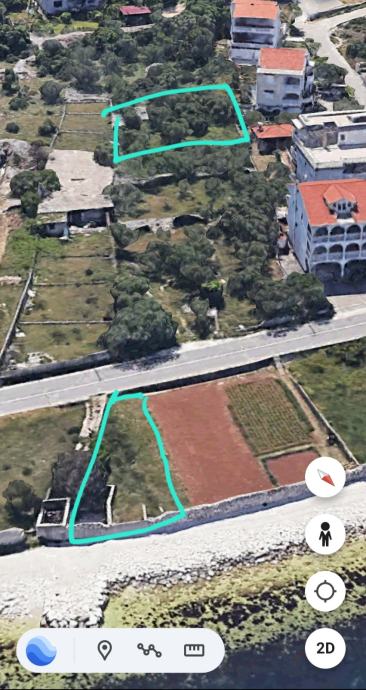 Prodaje se građevinsko zemljište 461m2 (kat.čest.1295/3 iznad ceste - M1 zona) i zemljište u R3 zoni od 253m2 (kat.čest. 1257/1 ispod ceste, na plaži) u Slatinama, predio Pišćina.