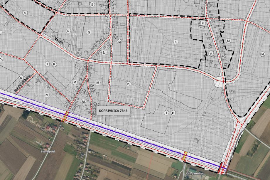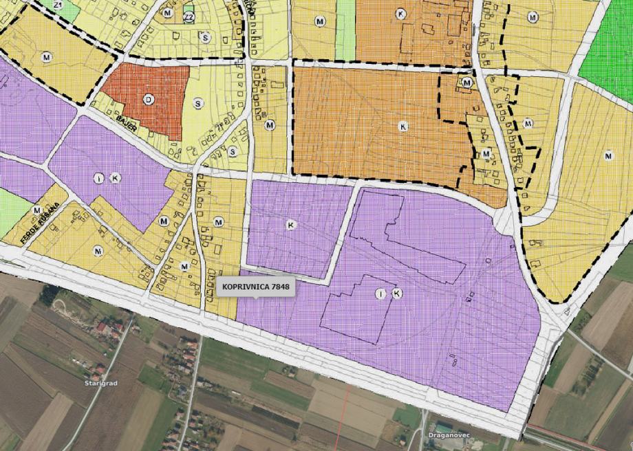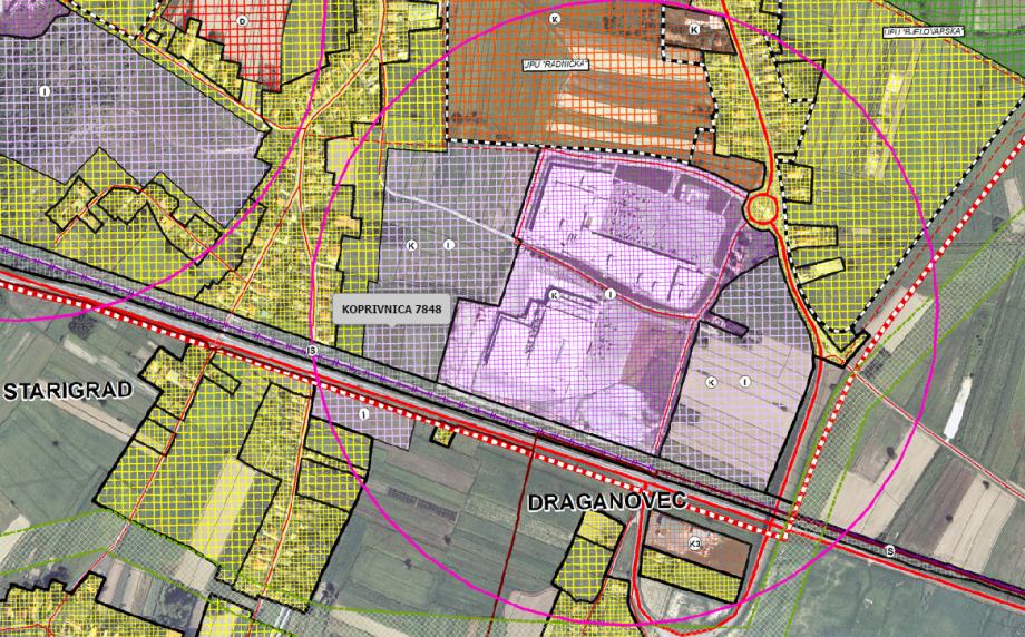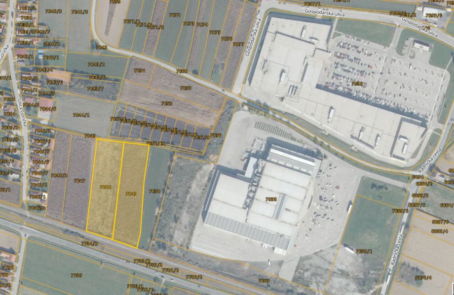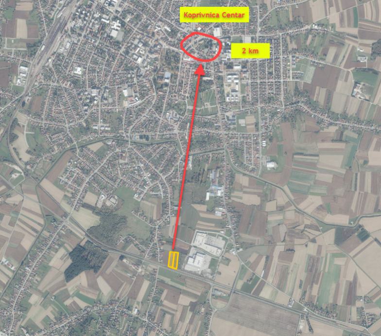 Zemljište graniči s jedne strane sa parcelom u vlasništvu grada Koprivnice (površine 4.951 m2) te sa druge strane sa parcelom u privatnom vlasništvu (površine: 5.528 m2). Budući postoji mogućnost otkupa i spajanja sa susjednim česticama, moguće je pripajanje u ukupnu površinu do max. 22.786 m2.