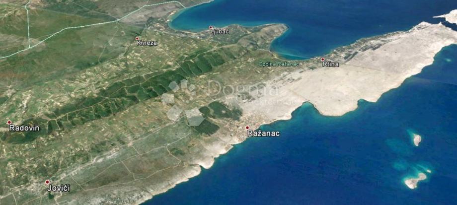 Na udaljenosti 6 km od mora prodaje se građevinsko zemljište od 1459m2, dimenzija 32×45m. Teren je pravilnog oblika, blago je nakošen, nalazi se na maloj uzvisini. Smješteno na izlazu iz samog mjesta, u mirnom i neprometnom dijelu te se sa njega pruža panoramski pogled za Radovinska polja i Ljubačko more.Zemljište trenutno služi kao maslinik na kojem se nalazi 45 maslina starih 40-tak godina.