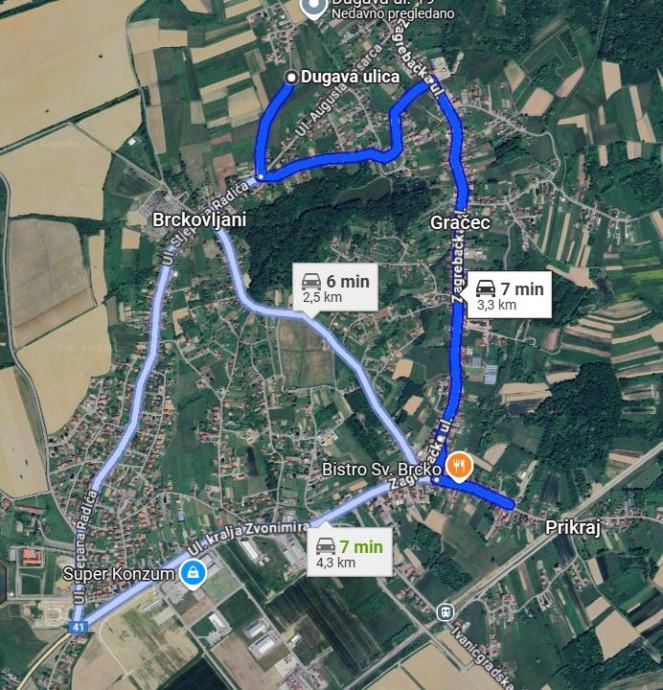 Prodaje se građevinsko zemljište u naselju Gračec, u sklopu Općine Brckovljani, Grad Dugo Selo, ukupne površine 1.511 m². Zemljište je ravno i smješteno uz prometnicu, što ga čini lako pristupačnim i idealnim za izgradnju obiteljske kuće ili druge stambene namjene.