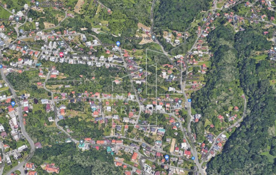 Građevinsko zemljište površine 1612 m2 na lijepoj lokaciji iznad grada, izmedju Šestina i Svetog Duha. Sastoji se od dvije spojene parcele te se na njemu nalaze dva stambena objekta.