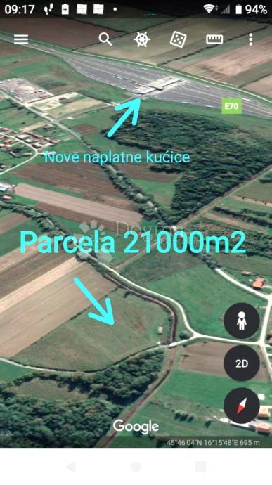 Prodaje se građevinsko zemljište od 21000 m2 gospodarsko- proizvodne namjene.
