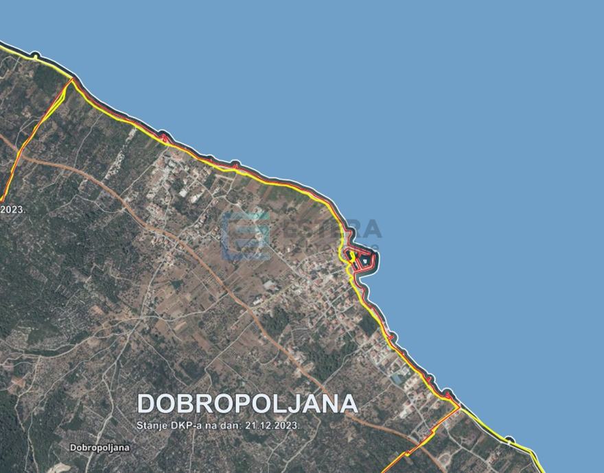 Dobropoljana, prodaje se građevinsko zemljište prvi red uz more od 2940 m2. Pruža se pogled sa zemljišta na more, Zadar i Velebit. Mirna lokacijom okružena morem i zelenom prirodom.