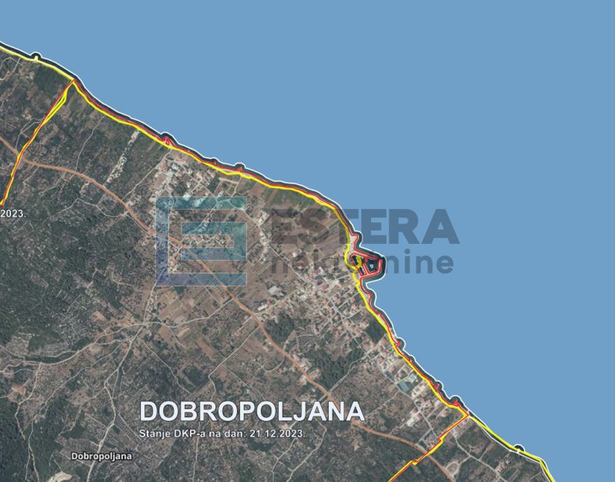 Dobropoljana, prodaje se građevinsko zemljište prvi red uz more od 2940 m2. Pruža se pogled sa zemljišta na more, Zadar i Velebit. Mirna lokacijom okružena morem i zelenom prirodom.
