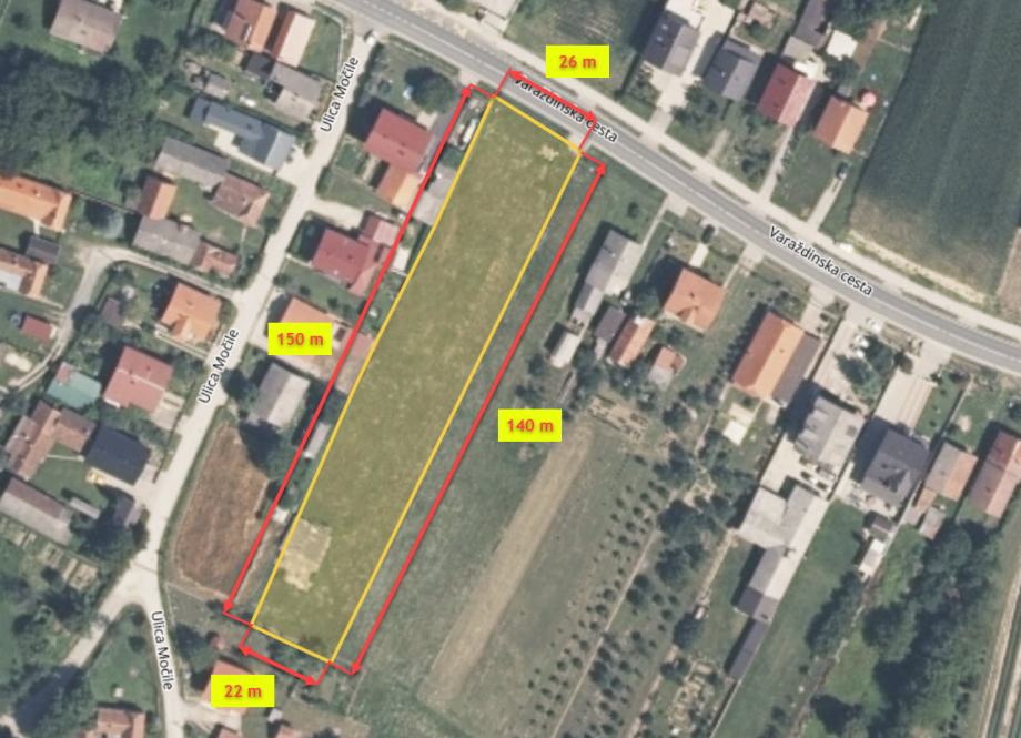 Prednost zemljišta je i njegova pravilna veličina - 26m u širinu te 150 m u duljinu, što omogućuje izgradnju duljeg objekta sa dovoljno prostora za prilaznu cestu ili parkiralište.
