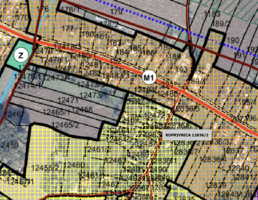 Zemljište je veličine 3.169 m2 , smješteno je na svega 4,5 km od centra Koprivnice te je jednim svojim dijelom smješteno u mješovitu, a drugim u stambenu zonu.