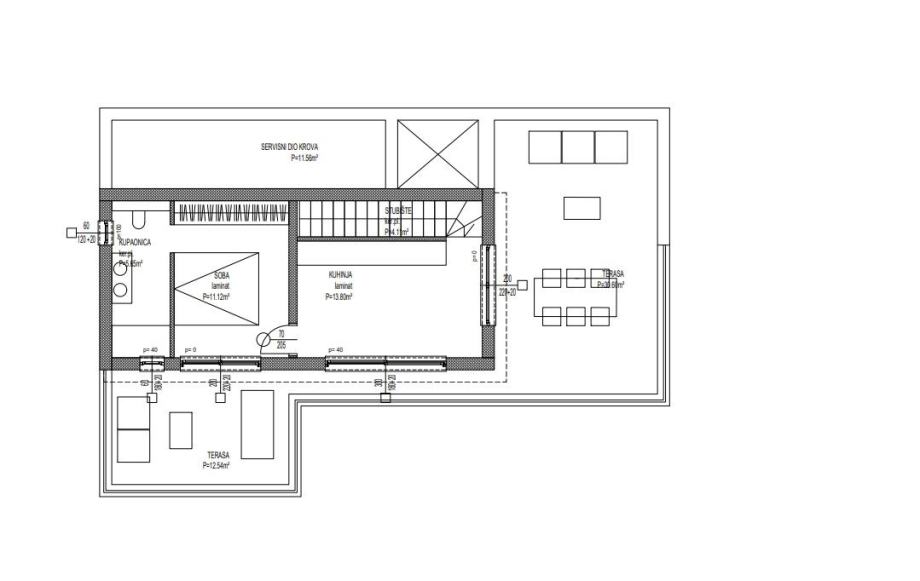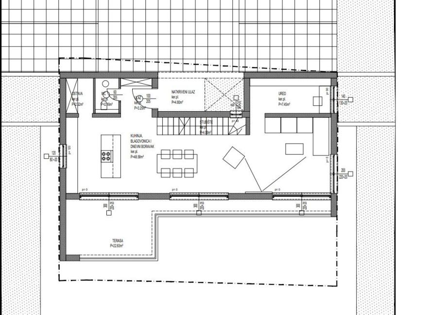 - dnevni boravak s kuhinjom i blagovaonicom (48,58 m2)