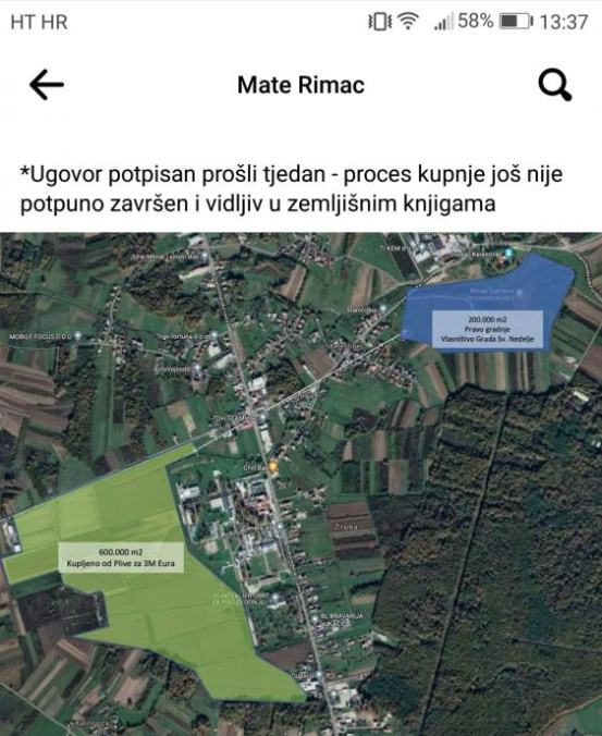 Prodaje se zemljište u Klemenčićevoj ulici u Kerestincu (1283 m2) odmah pokraj budućeg Rimac kampusa, u blizini novo kupljenog zemljišta od Plive (600 000 m2 za gradnju dodatnih tvorničkih objekata) te pokraj budućeg Centra za ispitivanje tehnologije i komponenti - lokacije obilježene na slikama. Ulica je asfaltirana do pola i u njoj se nalazi cca 30-ak kuća sa svim priključcima. Zemljište je u vlasništvu 1/1 i nema tereta.