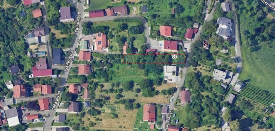 Građevinska parcela od 709m2, od čega je 306m2 u gradivoj zoni, dok je ostali dio namjene zaštitno zelenilo. Širina parcele prema prometnici iznosi cca 9m, dužina cca 70m. Teren je u strmom padu od istočne pristupne prometnice, prema zapadu. Parcela je ozelenjena, nema nikakve gradnje. Pristup je moguć sa ceste Jačkovinski klanec, uz istočnu među parcele.