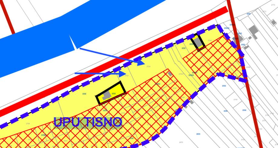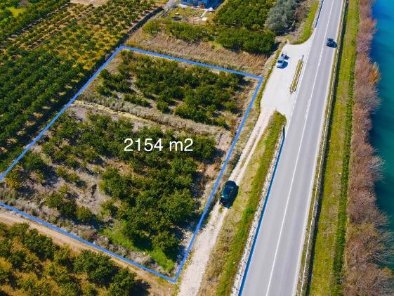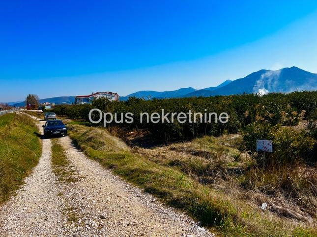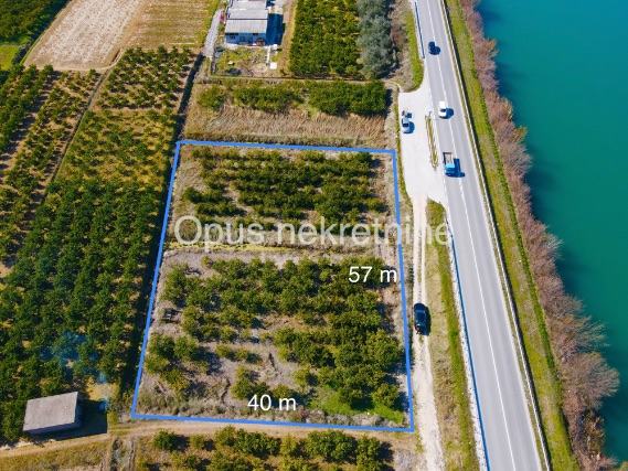 Parcela je dimenzija cca 57 m uz cestu i 40 m unutra. Sva infrastruktura uz parcelu, vlasništvo uredno. Trenutno je na zemljištu nasad mandarina.