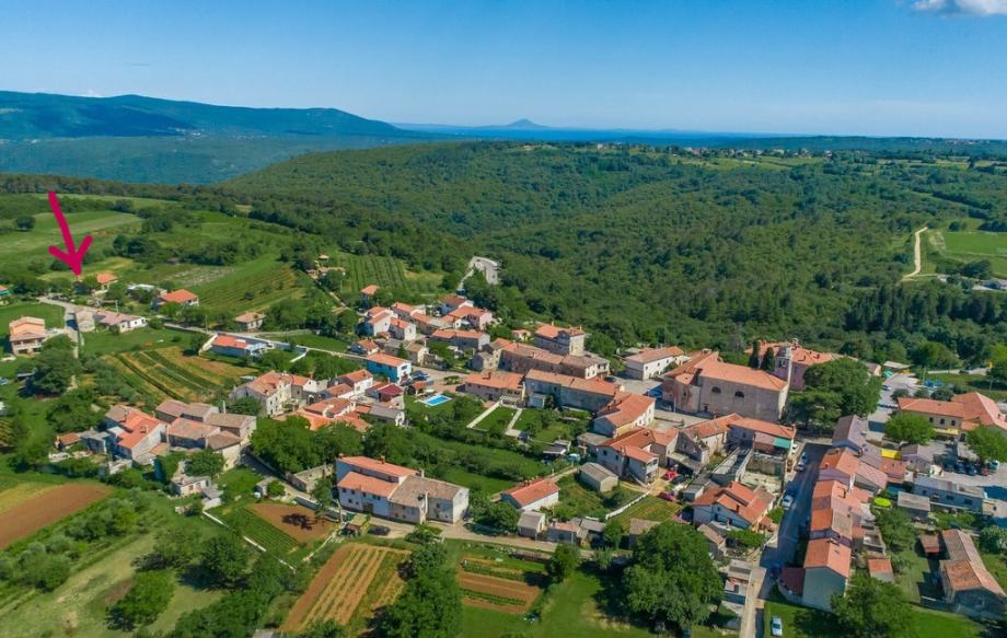 Otvoren pogled prema Ćićariji i Učki, a s druge strane prema staroj jezgri mjesta.