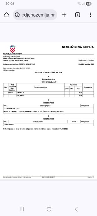 Kč 64/15 vlasništvo uredno 1/1 nema tereta, vlasnički list.