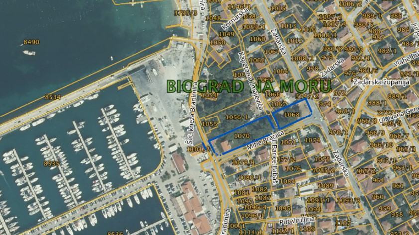 Prodaje se zemljište na vrlo atraktivnoj lokaciji u Biogradu na Moru, z.k.č. 1068, z.k.č. 1070 i z.k.č. 1101/1, vlasništvo 1/1, sveukupne površine 3.363 m2. Namjena zemljišta je za izgradnju, stambeno- turistička. Zemljište se nalazi od centra grada 500 m, prvi red uz more i uz marinu Kornati na samom ulazu.