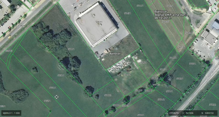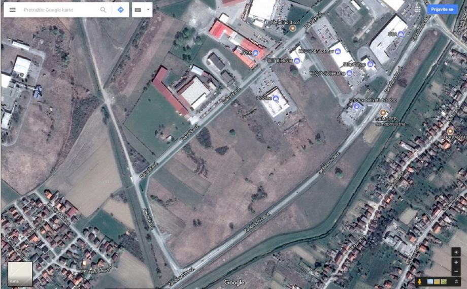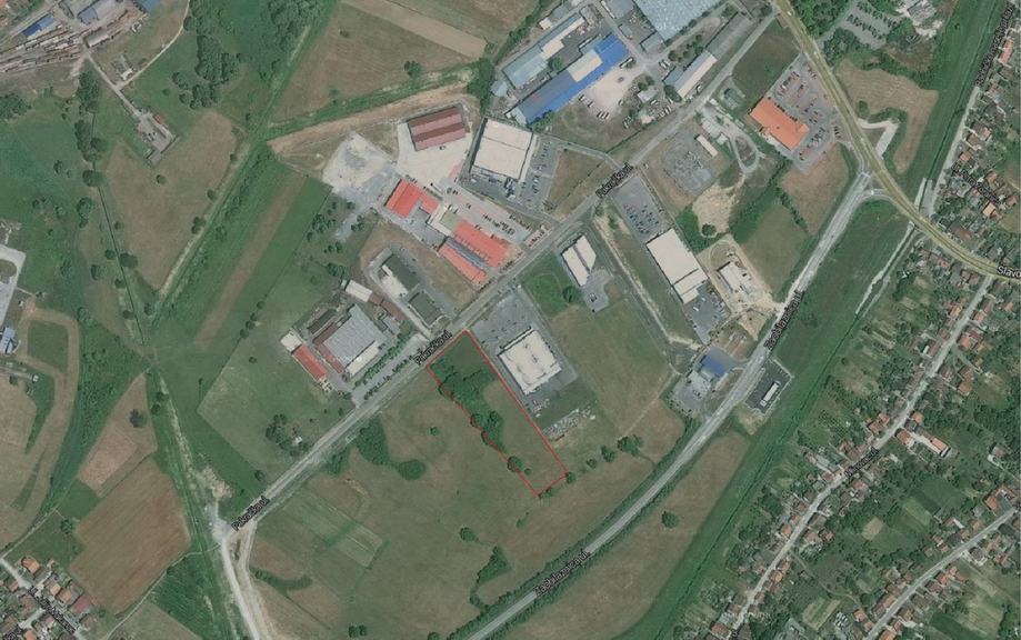 Parcela je lijevom stranom omeđena uz izgrađeni trgovačkog centra Plodine.