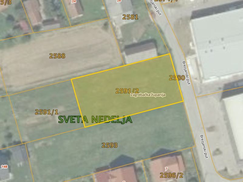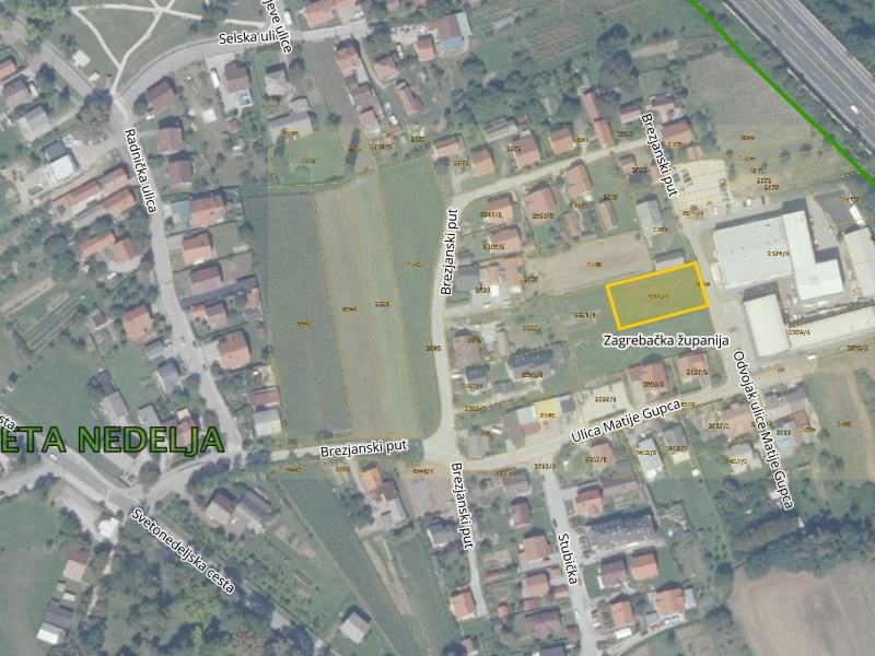 The land is completely flat, in a quiet street, only 400m from the Svetenedeljska road, 500m from the Brezje park, and only 1km to the center of Sveta Nedelja, and 2km to the entrance to the highway to Zagreb.