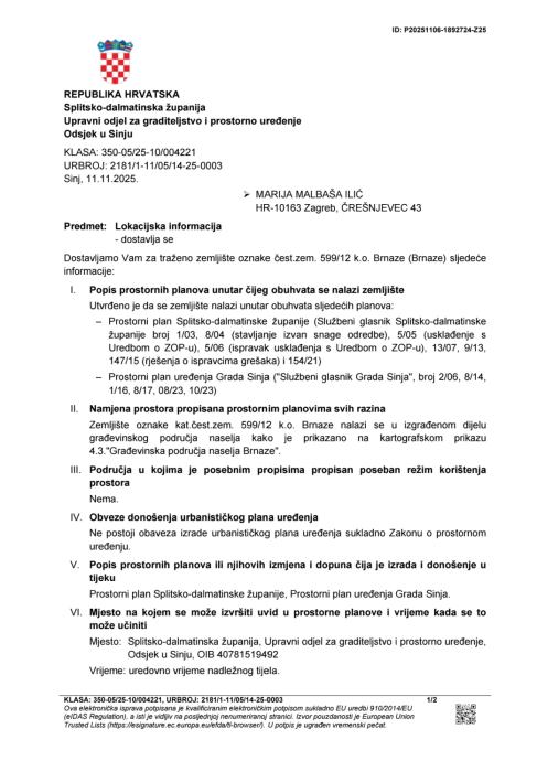 - Splitsko-dalmatinska, Sinj, Brnaze