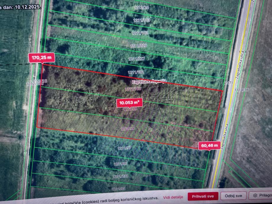 Širina zemljišta je 60 metara uz cestu te se i sa stražnje strane zamljišta nalazi put.