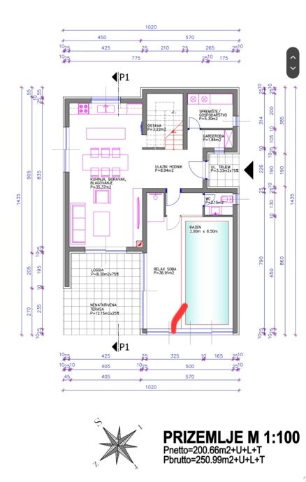 Planirana katnica površine 200m2, obogaćene prekrasnim unutarnjim grijanim bazenom koji će dodatno obogatiti vašu svakodnevicu.