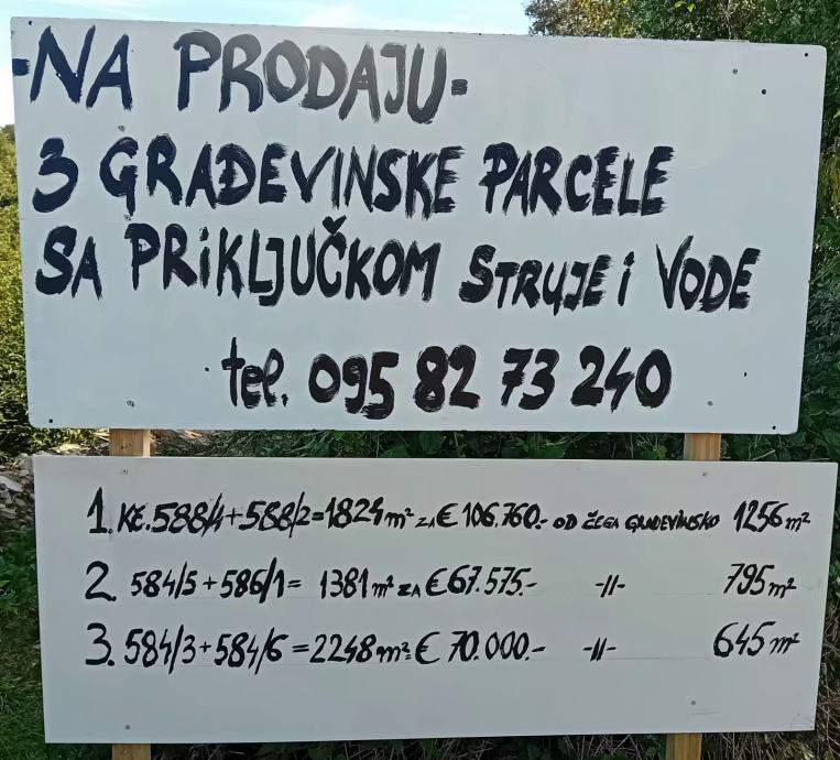 Prodajem 3 građevinske parcele sa priključkom struje i vode.