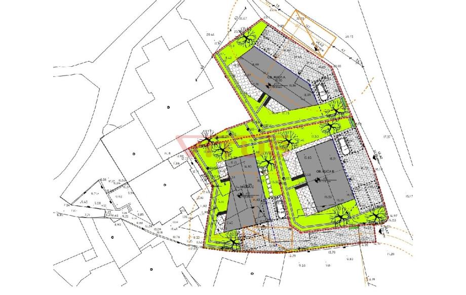 Otok Krk, Malinska! Na prodaju je građevinsko zemljište površine 1520 m2 sa pogledom na more na neponovljivoj lokaciji, u strogom centru Malinske! Trenutno je u postupku ishodovanje građevinskih dozvola za tri dvojne kuće (obiteljske kuće sa dvije stambene jedinice), katnosti prizemlje+kat sa okućnicom i parkirnim mjestima. Iznimno tražena lokacija, 100 m od mora i svih potrebnih sadržaja. Rijetkost na tržištu!