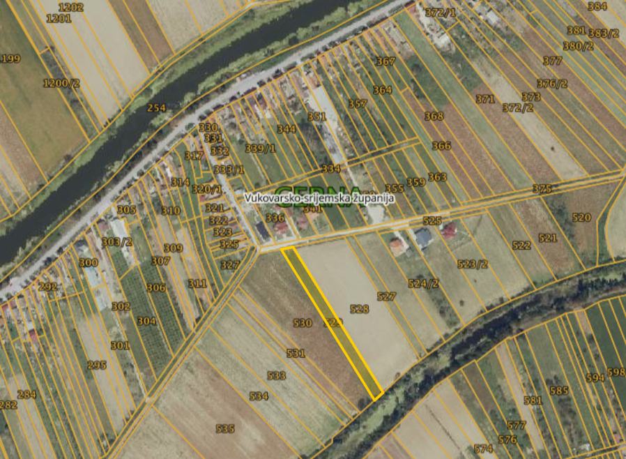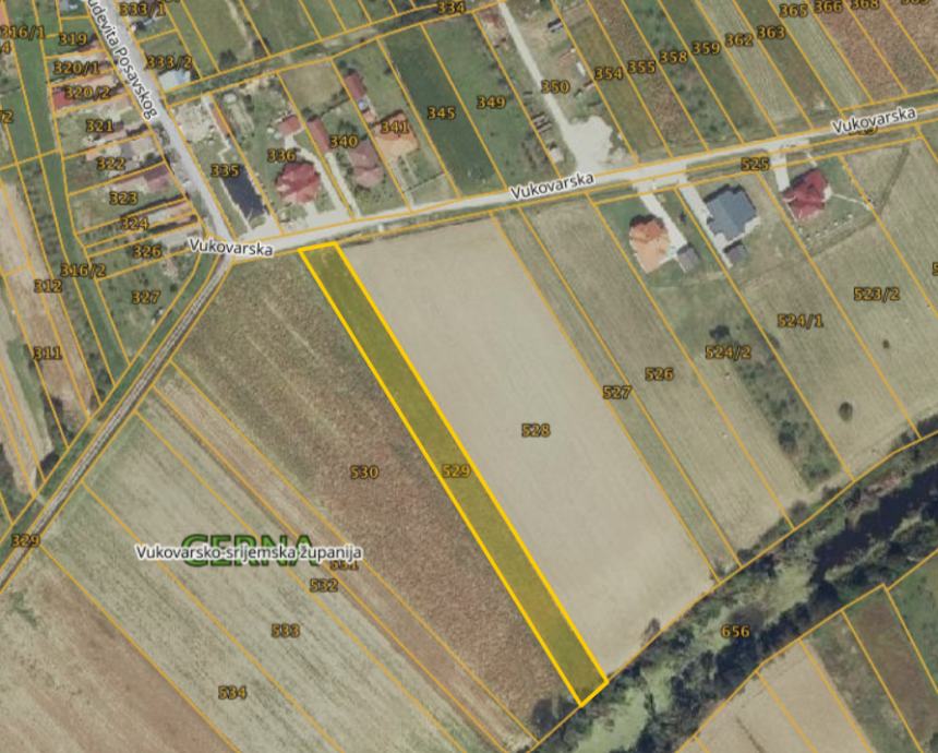 Prodajem građevinsko zemljište/oranicu u Cerni, u Vukovarskoj ulici, k.č.br. 529, površine 3.827 m².