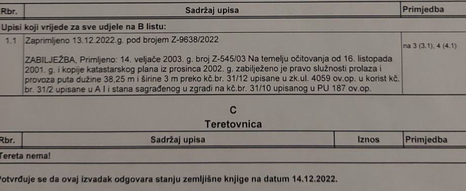 Objekt ima pravo služnosti puta do ul. A. Starčevića.
