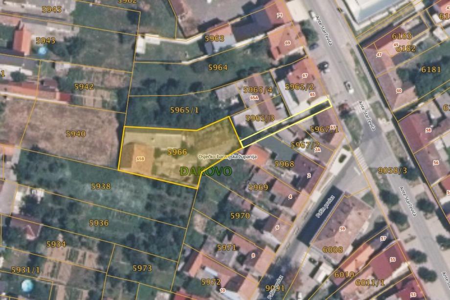 Ul. Ante Starčevića, 852 m^2. Na parceli se trenutno nalazi objekt za rušenje, bivša radionica 305 m^2.