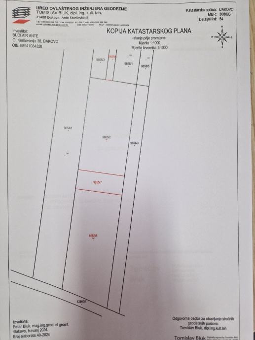 Cijelo zemljište se nalazi u građevinskoj zoni, moguća parcelacija. Do sad su prodana dva placa jedan od 1000 i jedan od 650 m2. Za plac 9655/8 površine 3454 m2 na kojem će biti izgrađena solarna elektrana je potpisan ugovor o najmu na 30 godina i moguće ga je kupiti te primati najamninu. Cijena ovisno o površini, a ostalo je još cca 3000 m2.