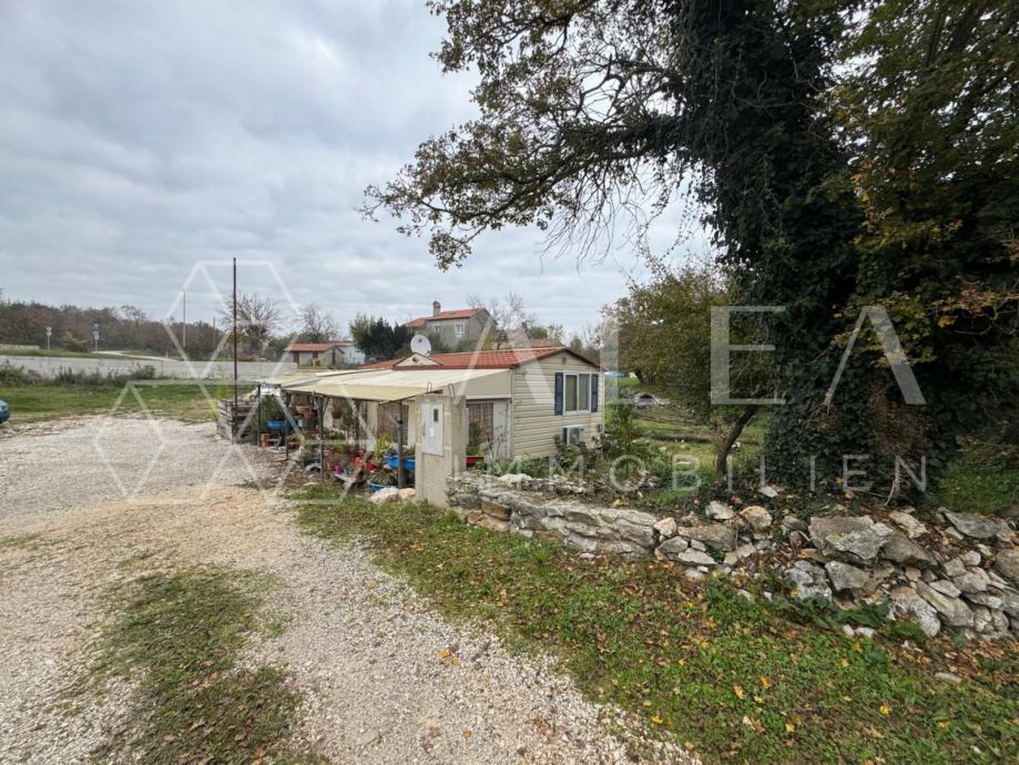 · Na parceli se nalazi mobilna kućica površine 32 m², uz dodatnu zatvorenu terasu od 12 m² – idealna za privremeni smještaj ili korištenje tijekom gradnje