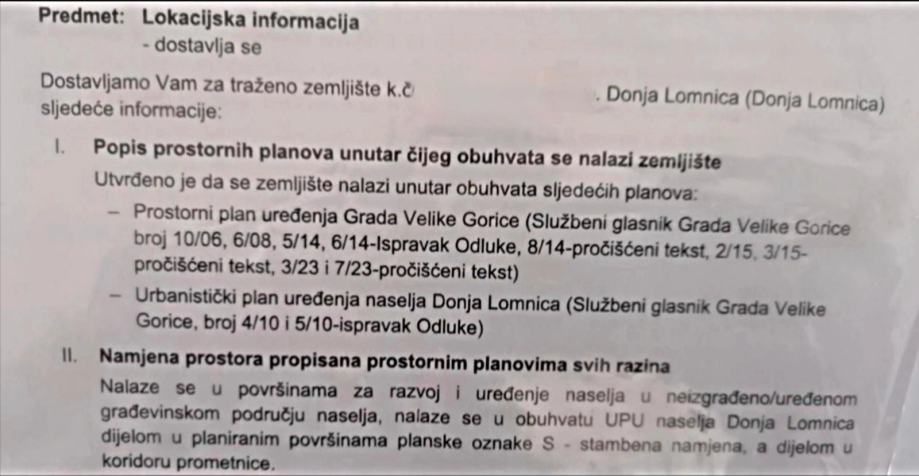 Građ.zem.1672 m2 u prigradskom naselju V. Gorice D. Lomnici svega par km udaljenosti od V. Gorice i N. Zagreba.Na zemljištu su gradilišta uz cestu od 806 m2 i 866 m2 sa vlastitim pristupnim putem uvučeno od ceste 45 m. Oba gradilišta su u zoni stamb.namjene (S), 100% površine građevinsko. Dozvoljena je gradnja višeobiteljskog stamb.objekta sa 4 stana,jednoobiteljskog objekta do 2 stana(duplex), 3-etažnog stamb.objekta na svakom od gradilišta. Koeficijent izgrađenosti je 0.4. Dostupna lokac.informacija. Uz zemljište svi kom. priključci struja,voda,kanalizacija,plin,optika. Čvor Odra /Velika Mlaka, čvor Buzin, brza cesta D-30 N. Zagreb - V. Gorica- Zrač.luka Zagreb na par minuta vožnje . Naselje ima školu,jaslice,vrtić, ambulantu,zubara,ljekarnu,poštu, 3 trgovine, pizzeriu,kafiće,pekaru,sportske sadržaje. Za V. Goricu gradski prijevoz besplatan,uz njega voze Zet-ove linije za Zagreb. Oba gradilišta na ravnom terenu,pravilnog oblika. Ulica je sporedna i asfaltirana.Okruženje obiteljskih kuća. Uredno vlasništvo 1/1,bez tereta. Lokacija je brzorastuća, te je odlična prilika za investiciju. Mogućnost prodaje cijelog zemljišta ili po gradilištu.Položaj gradilišta se ističe odličnom prometnom povezanošću i blizini svi urbanih sadržaja.Bez agencijske provizije. Mob. 091/ 5185-075
