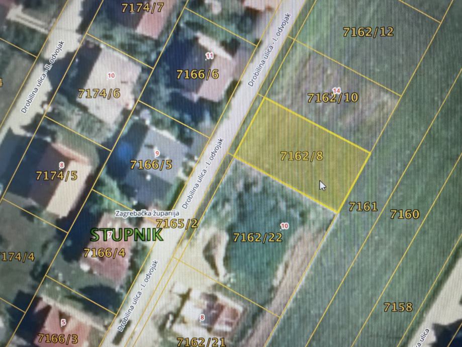 Zemljište je podijeljeno na 2 parcele od kojih je ona veličine 561 m2 namijenjena za gradnju (dimenzije 17,8x 31.5 m) dok je 39 m2 rezervirano za općinu koja će taj dio otkupiti kako bi mogli proširiti cestu i napraviti kolnik. Zemljište se nalazi u Drobilinoj ulici, I odvojak (slijepa ulica, idealna za obiteljske kuće). U neposrednoj blizini se nalaze dječji vrtić i autobusna stanica.