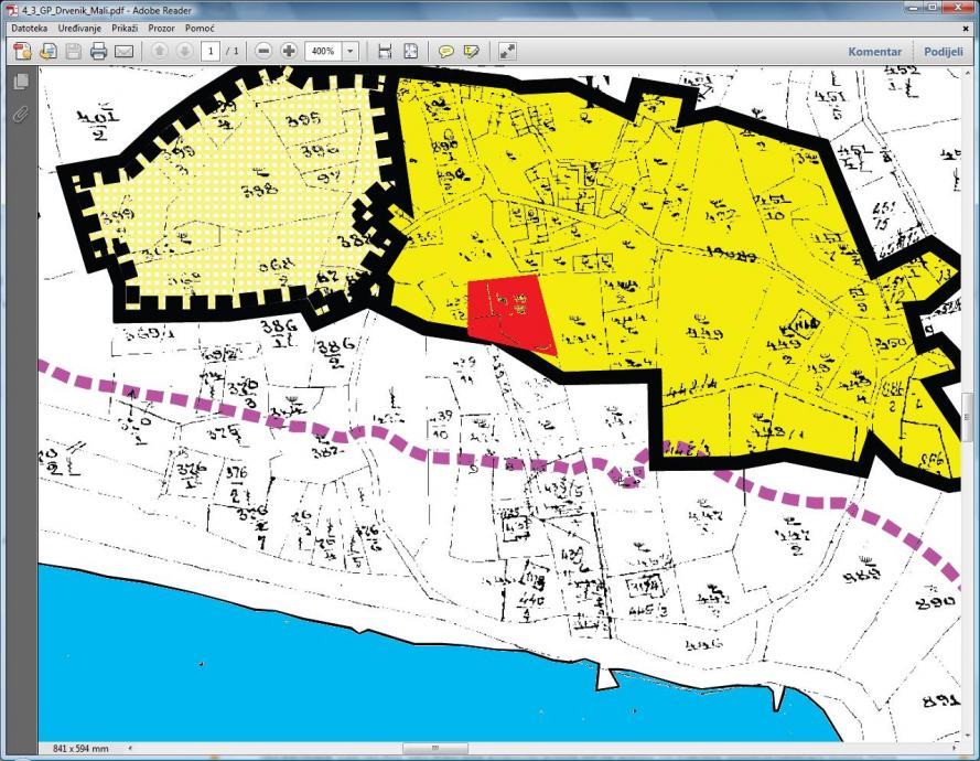 Prema "Uvjerenju" službe za graditeljstvo zemljište se nalazi u zoni " građevinsko područje naselja - izgrađeni dio" te nema obaveze izrade UPU, može se odmah dobiti dozvola za gradnju kuće.