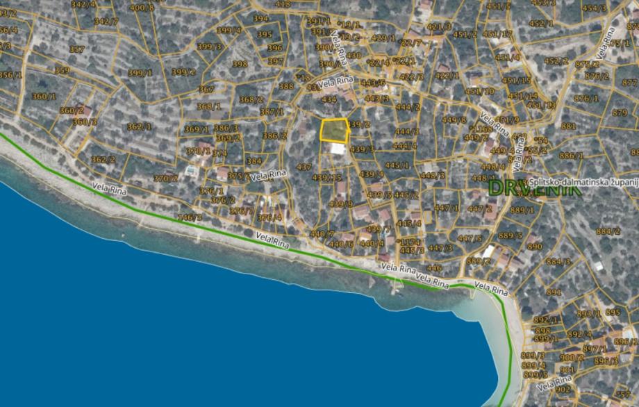 Otok Mali Drvenik, uvala Vela Rina, građevinsko zemljište 419 m2, kat.čest.zem. br. 439/12 K.O. 330698 DRVENIK, udaljeno 100 metara od mora i najljepše pješčane plaže na južnoj strani otoka, pravilnog oblika cca 20m x 20m, mogućnost kupnje veće površine. Na parceli se nalazi 5 starih maslina.