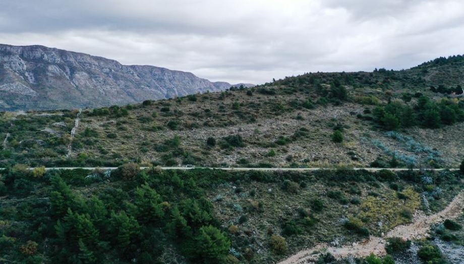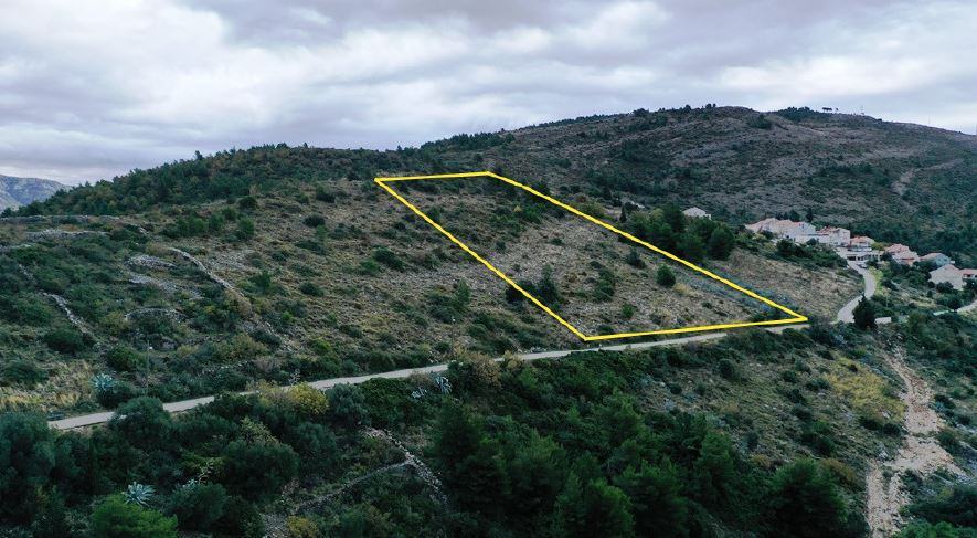 • Predmetna nekretnina je građevinsko zemljište koje čine tri katastarske čestice 638m2 , 1915m2 i 7042 m2 ukupne površine 9595 m2. Teren zemljišta je u nagibu prema jugozapadu, prema morskoj obali, u naravi je dio krškog krajolika mjestimično prekriven makijom. Predmetna parcela je nepravilnog oblika, neograđena te svojom jugozapadnom međom naslonjena na pristupnu prometnicu.